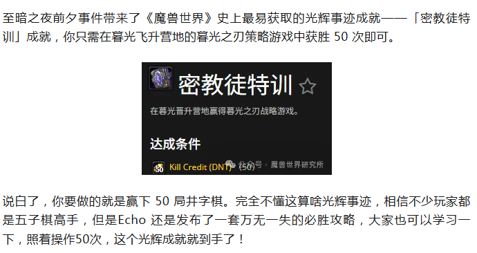 魔兽史上最容易获取的光辉成就!ECHO战队甚至发了个攻略...