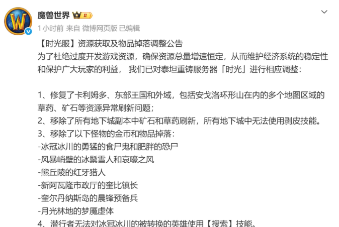 【魔兽世界】时光服5大刷金路子全部大砍,彻底和GZS切割了