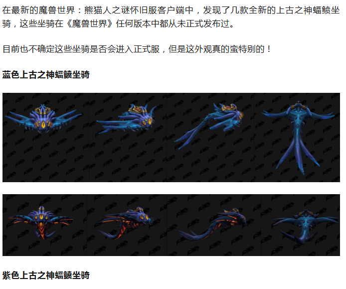 魔兽:数据挖掘全新款式的上古之神坐骑!能飞还很大,造型非常独特!