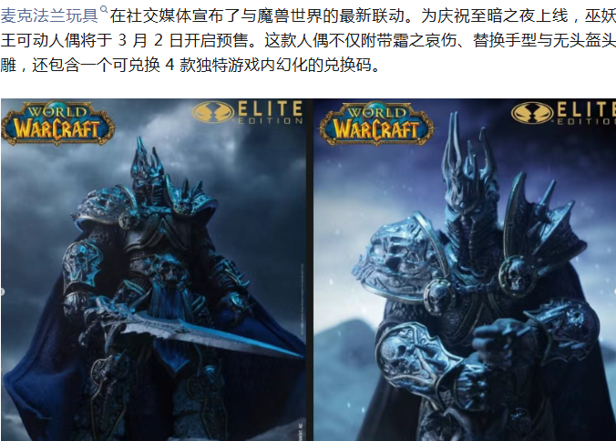 魔兽:最新巫妖王可动手办来了!购买手办还送四款独特游戏幻化!