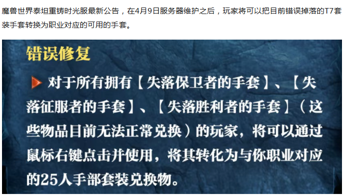 魔兽时光服:T7套装修复公告