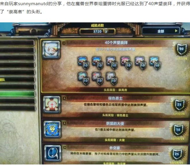 魔兽时光服超级肝帝!已获取40声望崇拜“崇高者”头衔!