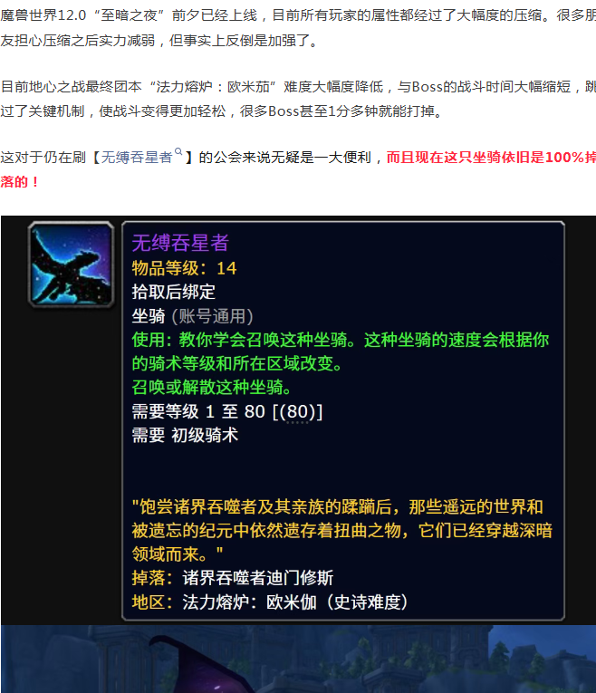 魔兽世界:前夕上线后团本难度被削成渣!无缚吞星者100%掉落可速刷