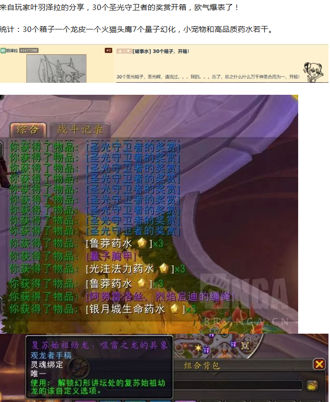 魔兽玩家欧气爆表!30个箱子开了火焰猫头鹰和龙皮