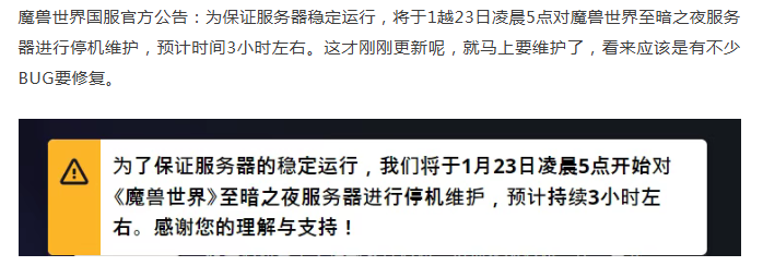 魔兽世界:凌晨5点将紧急停机维护3小时