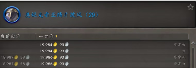 我们需要现在拍卖行购买一个道具:奥妮克希亚的鳞片披风,没错就是60年代打奈法利安必备的披风