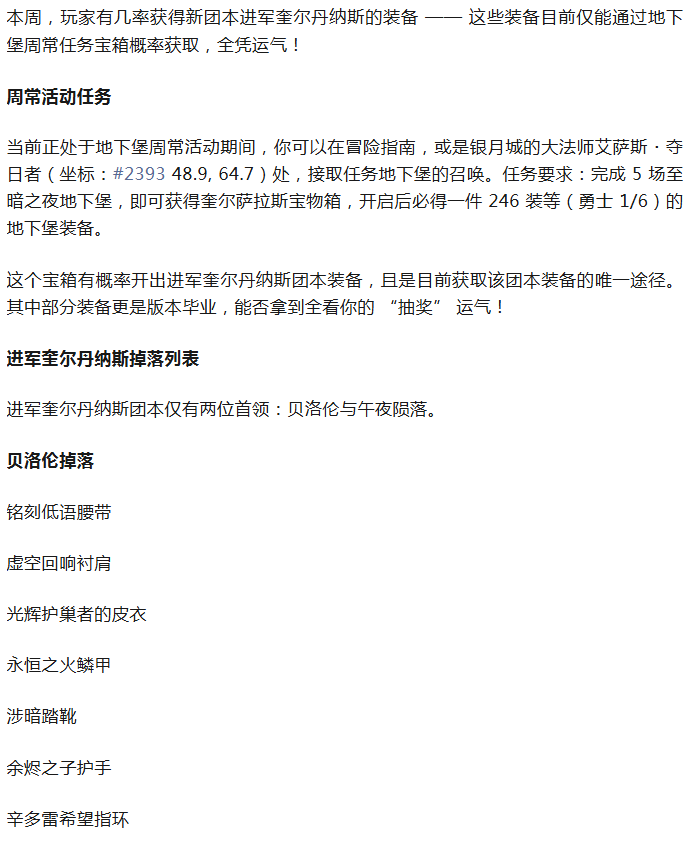 魔兽:本周这个周常一定要做!欧皇可提前拿到毕业装备!
