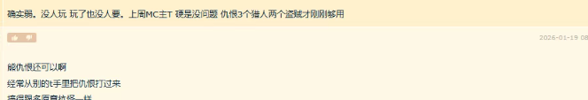 服最惨职业了,团不仅没有补贴还要倒贴,所以很多玩这个职业的玩家基本上都不去打团,这就是熊T,甚至有玩家直接建议把熊t删除算了,因为按照雷火的做法,只要是有人气的弱势职业,基本都会得到加强,但是熊t完的人并不多,所以得到加强的概率不大,就算是有加强也不会很离谱。