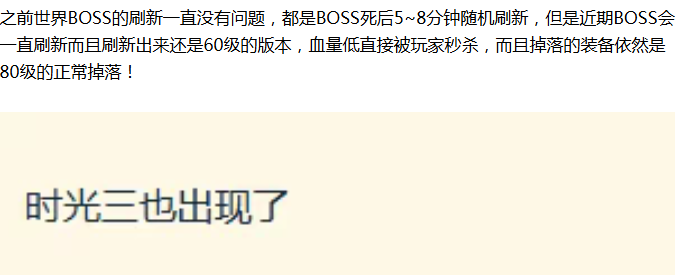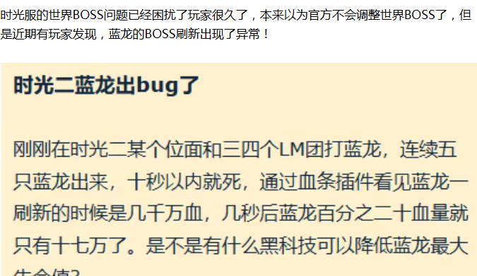 官方极有可能会在近期修改世界BOSS的刷新逻辑,不然也不会突然出现刷新bug,现在世界BOSS确实太难打了,运气不好比打MC的时间还要长...