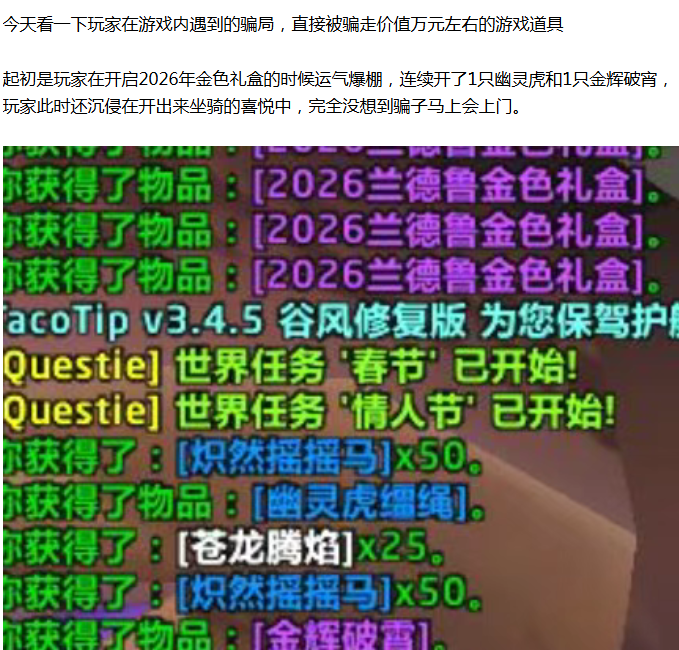 【魔兽世界】最"幸运"玩家!双开金麒麟和幽灵虎,但是转头就被骗子骗走了