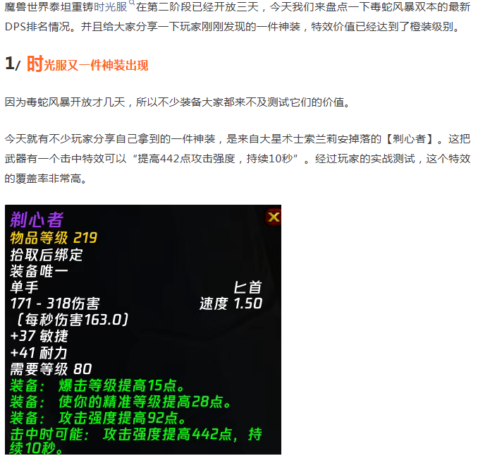 魔兽时光服又一件神装!特效超越橙武!最新DPS排行已刷新