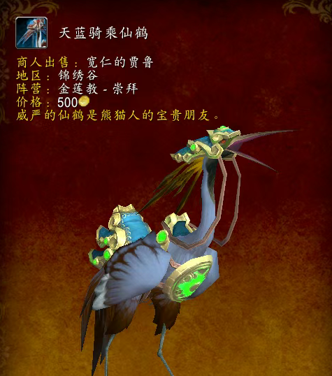 今天给大家分享熊猫人之谜版本的3只坐骑和1个声望达到崇拜的方法,大家只要稍微花个20分钟左右就能拿到啦!对应的坐骑是仙鹤坐骑,虽然那是地面坐骑,还是比较好看的。