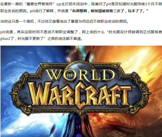 魔兽时光服:连续3个月没有职业改动的原因曝光了!暴雪要推倒重做