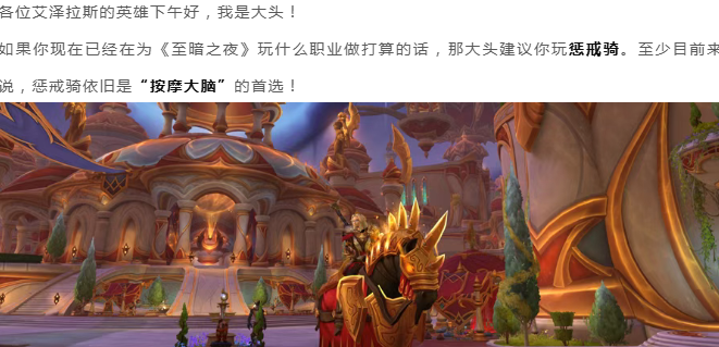 魔兽世界:至暗之夜想继续“按摩大脑”?这几个原因告诉你,惩戒骑还是YYDS!