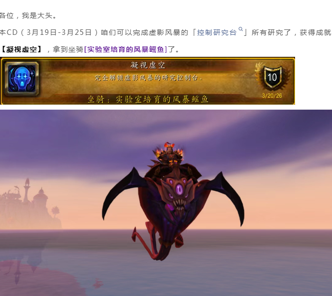 魔兽世界:本CD,虚影风暴有坐骑可以获取了!