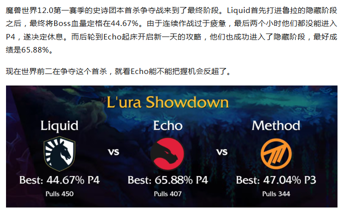 魔兽世界:M鲁拉首杀争夺白热化!Echo能否反超