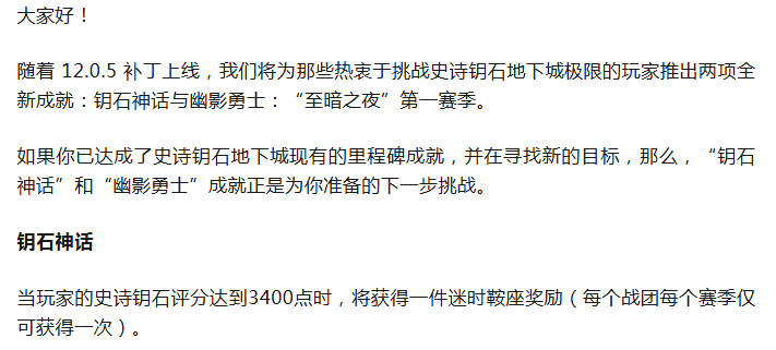 魔兽:官宣!本周3400分玩家可兑换两个新坐骑及14款绝版返场坐骑!