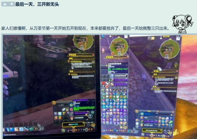今天看一个玩家分享的真实案例,一直五开刷新无头坐骑都没出,结果今天最后一天直接三开了新无头坐骑,该说这个玩家欧呢还是非呢...