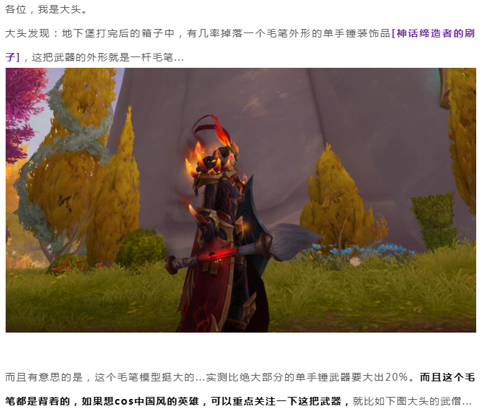 魔兽世界:大头发现一个毛笔外形单手锤,出自地下堡,模型很大、COS很棒