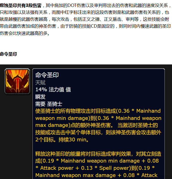 这把武器是防骑最适配的武器,就算隔壁的风剑在现阶段也难以抗衡,早就有玩家研究过,防骑的武器一定要用慢速武器,这样不仅仇恨高,伤害也会更高,对于防骑来说,常用的两个圣印,腐蚀圣印和命令圣印下,快速武器和慢速武器的区别如下: