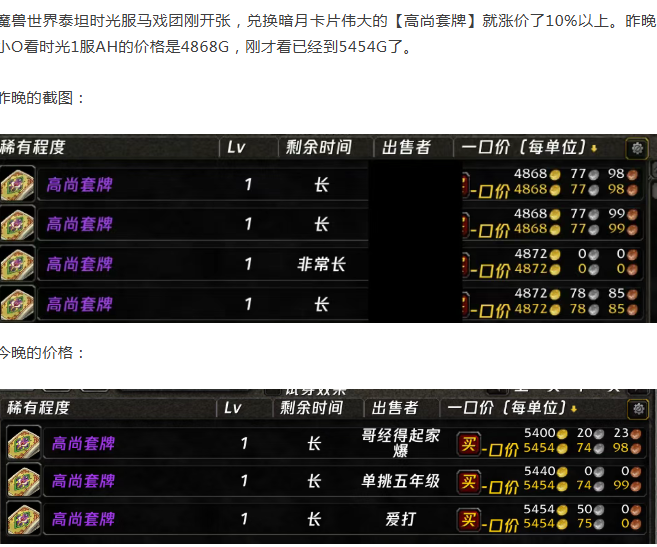 魔兽时光服:马戏团开张第一天,伟大涨价10%