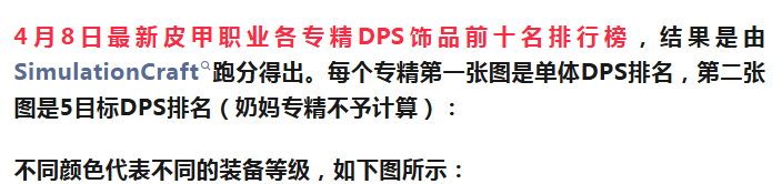 4月8日全职业专精DPS饰品Top10排行榜-皮甲篇