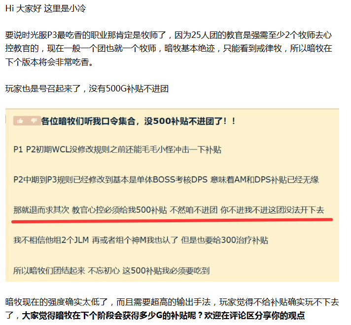 【魔兽世界】时光服P3最吃香职业!玩家号召没有500G补贴绝不进团