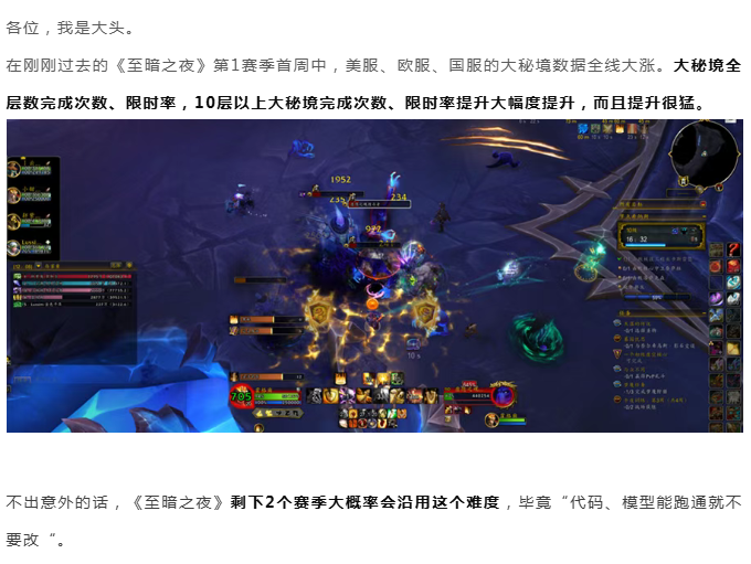 魔兽世界:玩家用次数投票,《至暗之夜》首周大秘境各项数据大涨,难度降对了
