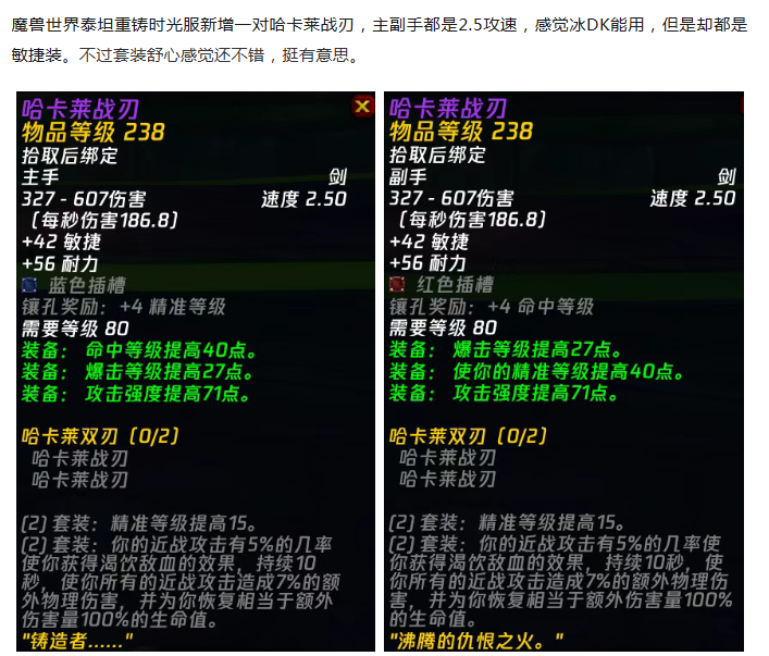 魔兽时光服:P4新增一套双刀