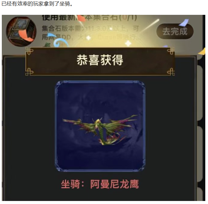 魔兽世界上千的卡牌坐骑阿曼尼龙鹰活动送了