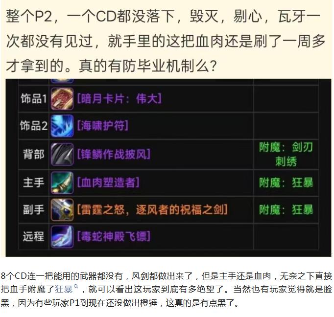 魔兽世界:时光服玩家意外触发防毕业机制,8个CD连一把能用的武器都没有
