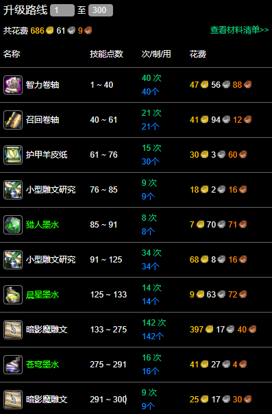 以上就是魔兽世界铭文1-300最省材料升级攻略的所有内容了,想要用最少的材料升级铭文这个专业的玩家可以在这里了解,快来看看吧。