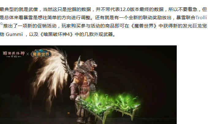 间暴雪的联动非常频繁,前有《魔兽世界》与《暗黑破坏神 IV》的联动奖励:鲍克豪斯小宠物,现在又有全新的促销联动活动。但这些奖励要么是外服要么是其他游戏,只想说什么时候才轮到魔兽呢。