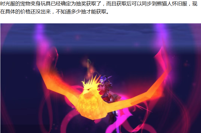 早在20天前在熊猫人的服务器上就挖掘到了奥的余烬玩具,所以官方将该玩具的获取方式设置为抽奖也在意料之中,之前外服的玩家还在猜测这个玩具的获取是和周年服有关,现在看来其实就是和时光服的联动奖励,凤凰坐骑一直是无数玩家最喜欢的坐骑,而凤凰宝宝只是独属于猎人宠物的一个变身玩具,那么你愿意为这个凤凰宝宝买单吗?欢迎在评论区分享你的观点