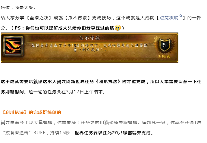 魔兽世界:大头踩坑分享!任务做完没跳成就爪不停歇,因为我忽略了这个细节