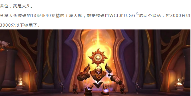 魔兽世界:大头整理,《至暗之夜》第1赛季第1周13职业40专精主流天赋