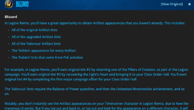 就在刚刚,暴雪官宣了一个重磅消息:在《军团再临:幻境新生》里,几乎所有神器外观都能再次获取!