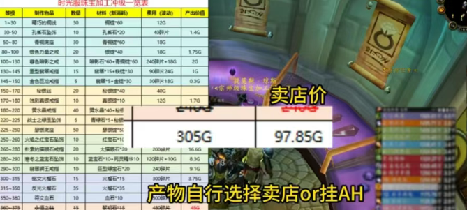 这应该是时光服珠宝冲级最省G的路线了,整个流程下来只要花费300G,但是部分材料可以直接丢拍卖行,所以整个流程下来只要200G,这对于近期想要冲级的玩家来说非常的友好。所以对此感兴趣的可以按照上面的路线和操作,绝对可以省一大笔。