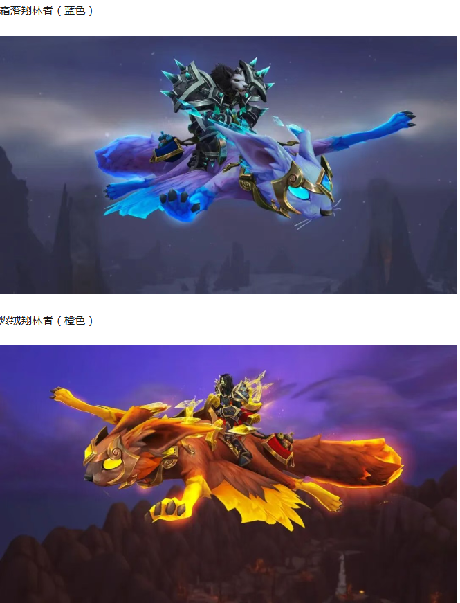 翔林者坐骑可由现有和未来的所有《魔兽世界》正式服角色使用,并会自动根据各个角色已经学会的最快骑术进行调整。如果角色的等级不足以使用飞行坐骑,翔林者也可用作地面坐骑。