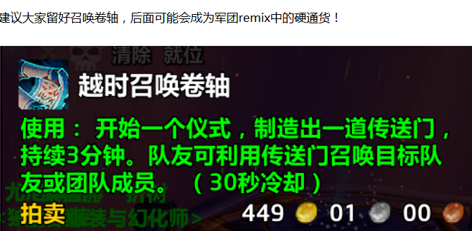 【魔兽世界】召唤卷轴成为remix硬通货,20个可带50层大秘境,获取极品幻化