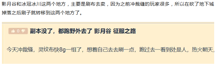 而就在12月12日到一次暗改下,野外刷子的天也塌了。目前实测下,外域的影月谷和诺森德的冰冠冰川这些刷子比较密集的地区,野外小怪的掉落都全部砍掉了。