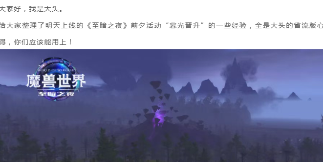 魔兽世界:大头心得分享,明天前夕活动“暮光晋升”的六点干货经验!