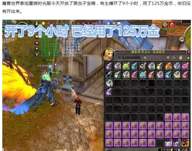 魔兽时光服:主播怒开9小时宝箱,花了125万依旧没开出黑虫子