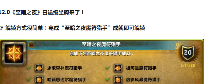 《至暗之夜》白送坐骑!猩红龙鹰10分钟到手!
