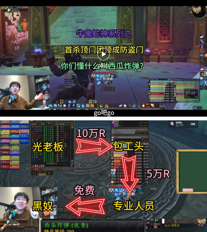 魔兽世界“熊猫人之谜”怀旧服最近魔古山宝库冲首杀闹出了大笑话。烤培根参与了一个由夏小光老板斥巨资10万元包团的服务器首杀团,早上顶门打到天黑,经历了一天牛鬼蛇神般的经历,路人看完都笑死了。