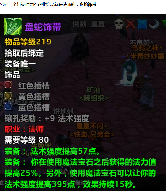 所以法师的这个职业饰品是非常强的,能用很久,而且只需要和别的法师一起竞争,运气好的话就是底价直接捡漏,术士和牧师都馋哭了!