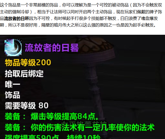 【魔兽世界】时光服最强职业饰品出炉,职业的饰品强度堪比暗月伟大
