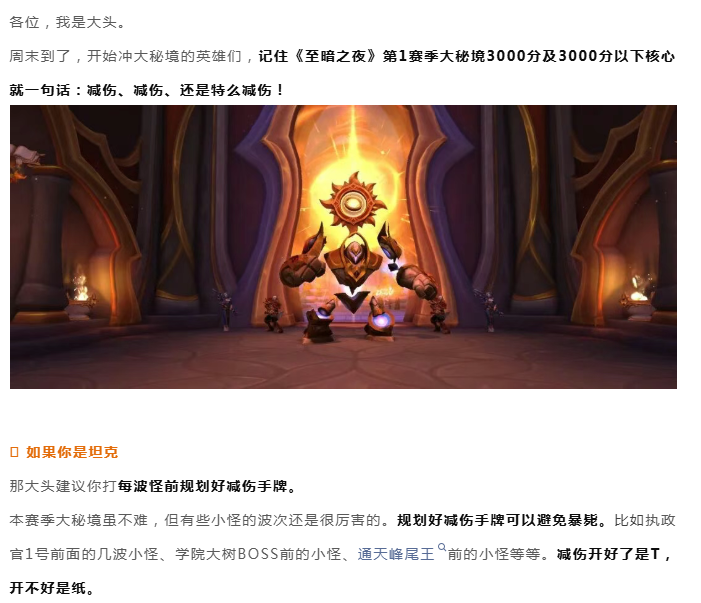 魔兽世界:《至暗之夜》第1赛季大秘境3000分及以下核心就一句话,减伤!减伤!还是特么减伤!