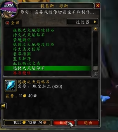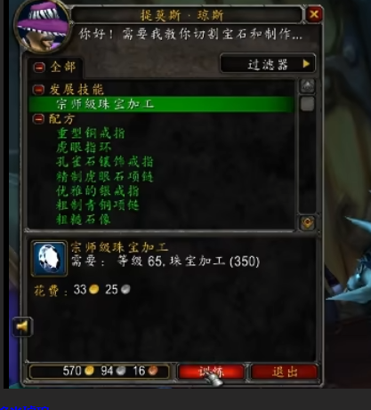 1. 学习宗师级: 在350点时学习 宗师级珠宝加工。