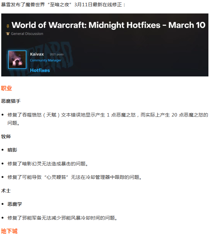 魔兽世界:3月11日最新在线修正